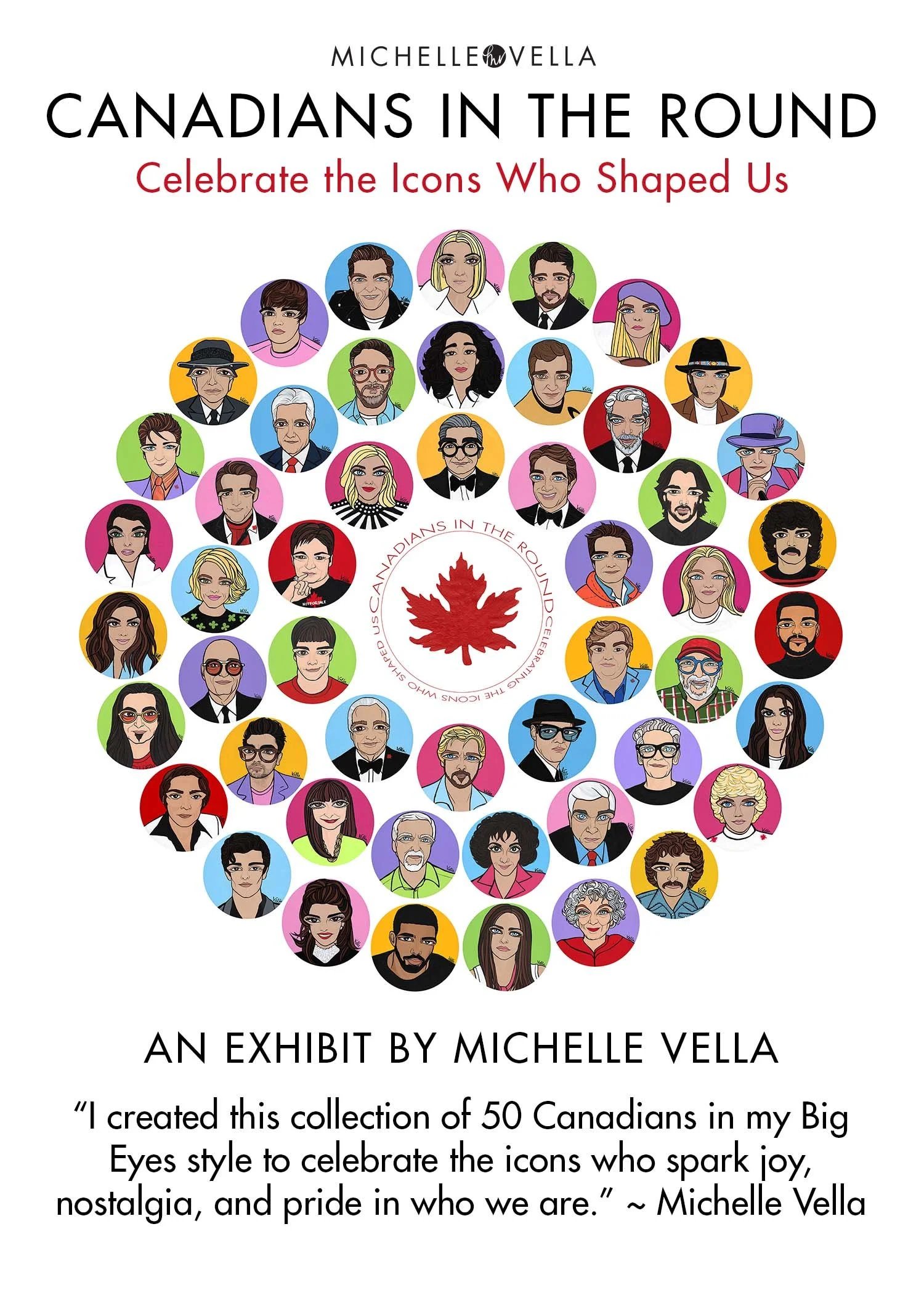 Join us for the opening reception of Canadians in the Round, a new exhibition by Toronto pop artist Michelle Vella, featuring 50 round portraits of iconic Canadians painted in her signature Big Eyes style.